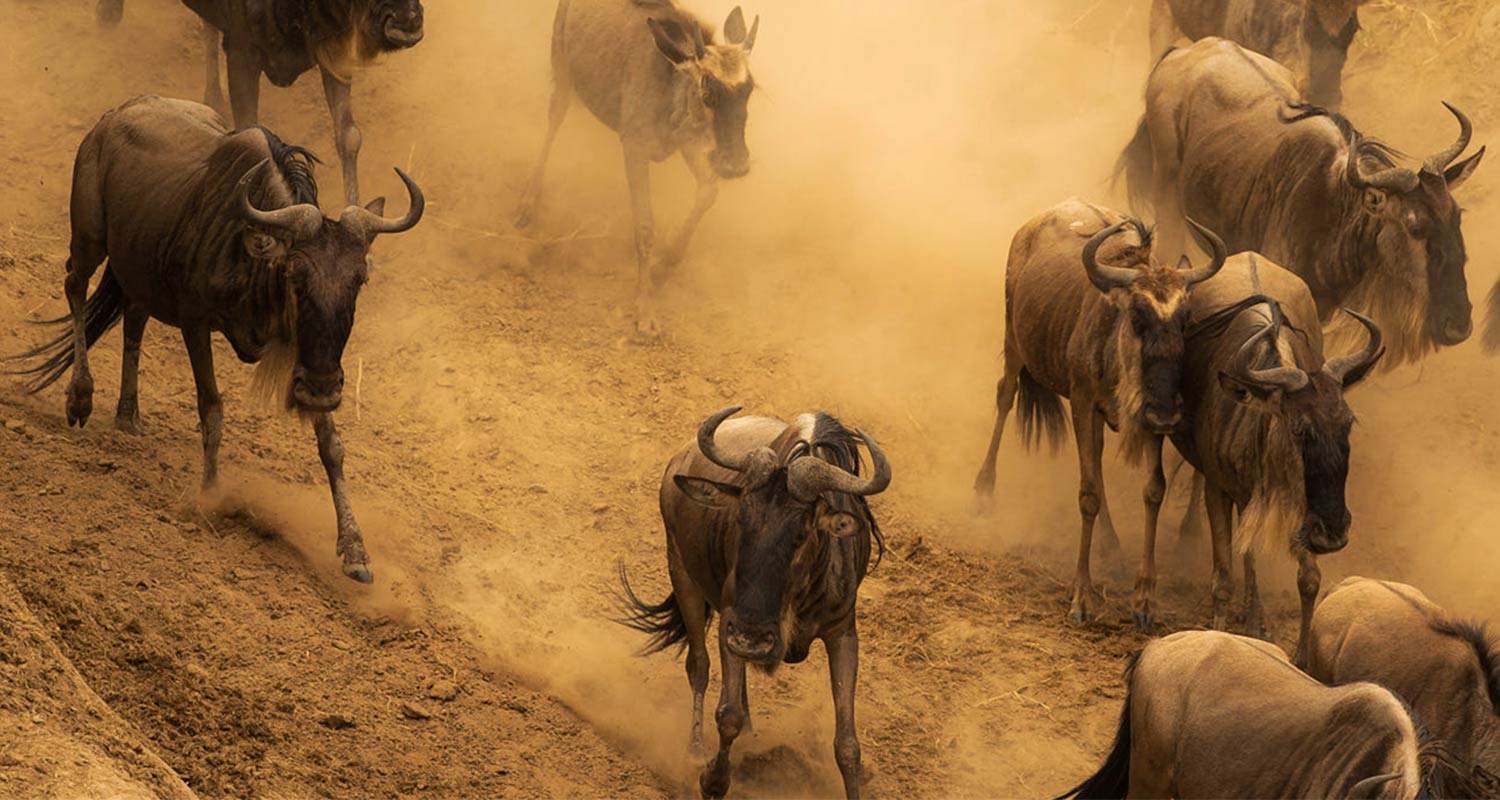The great wildebeest migration is one of the most remarkable natural spectacles on Earth. Each year, immense herds of wildebeest, joined by zebras and gazelles, travel 800-1 000km between Tanzania and Kenya in search of fresh grazing after the rains.