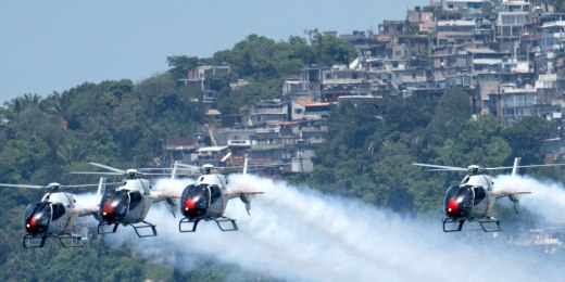 Spanish Air Force helicopter show amazes Rio beachgoers